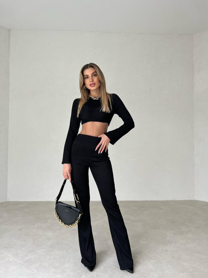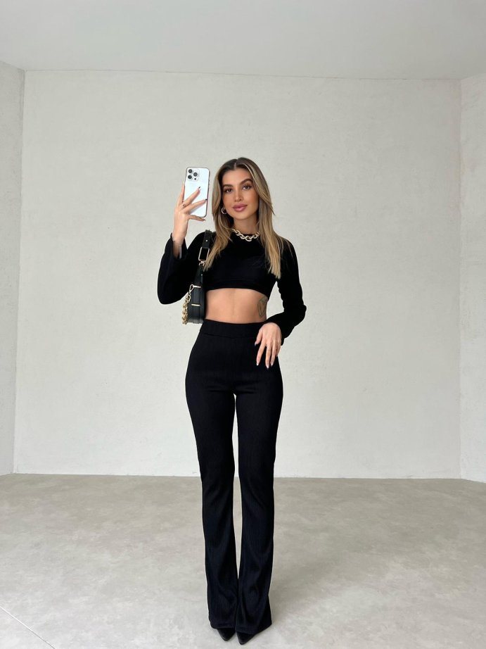 Crop-Pantolon Flash Takım 6423 - Siyah
