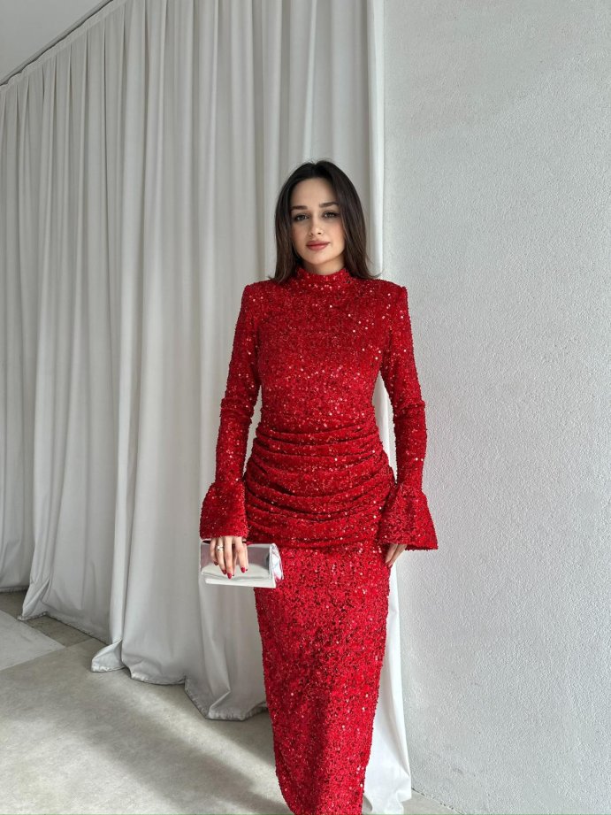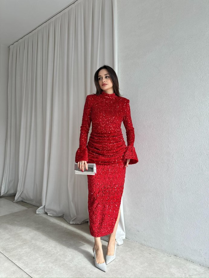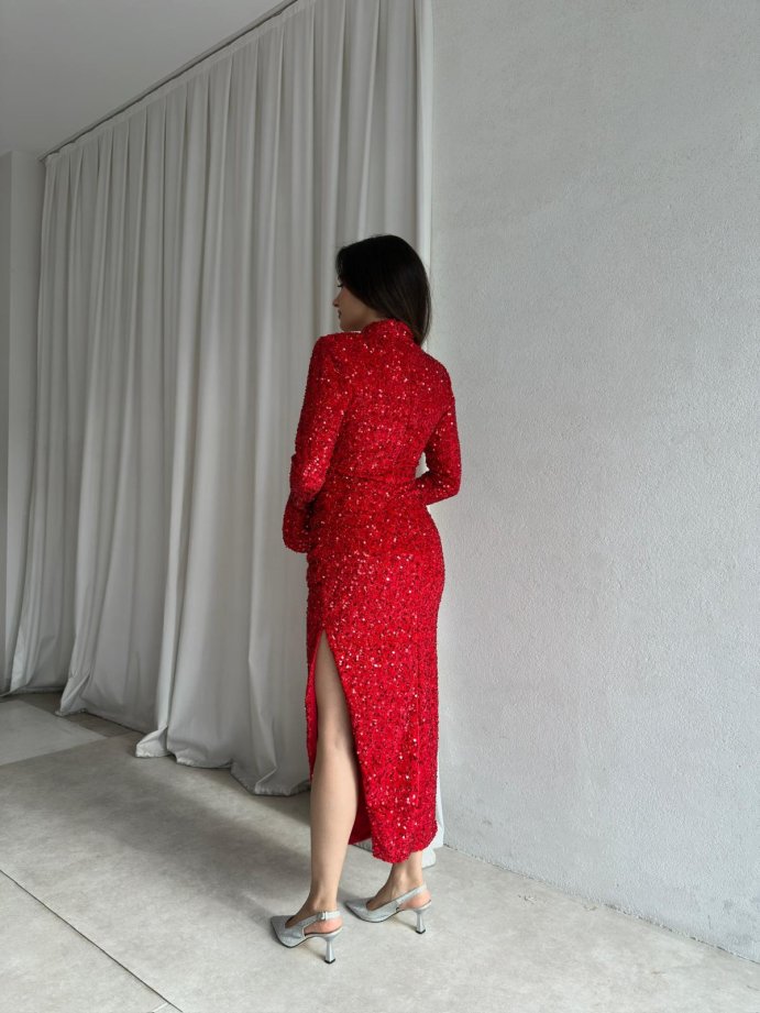 CRUSH Payetli Midi Elbise 8616 - Kırmızı