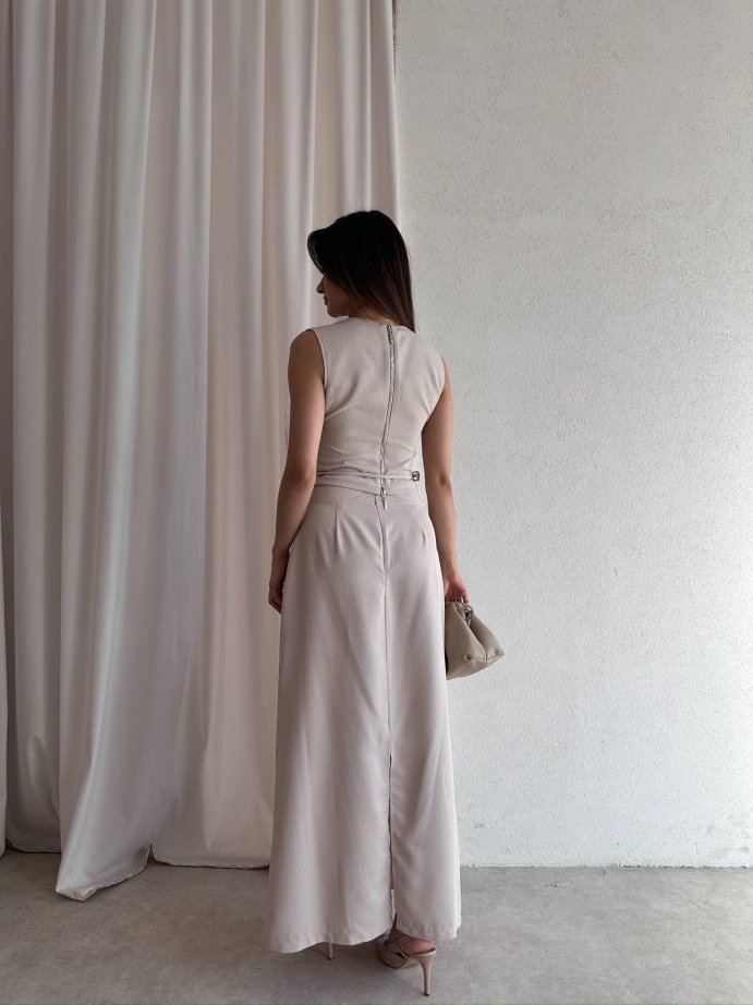 Dekolte Detaylı Midi THALES Elbise 5500 - Taş