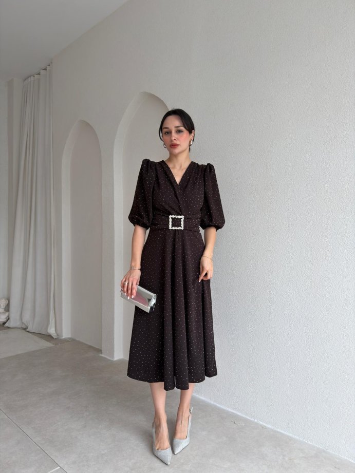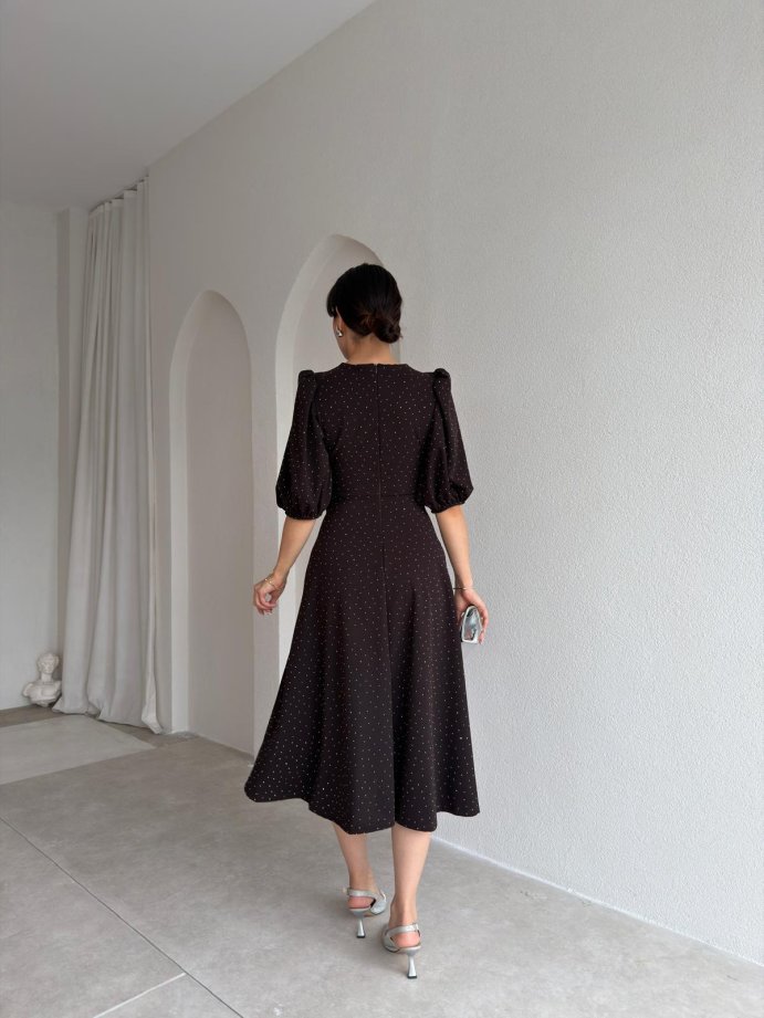 DAVE Taşlı Elbise 3444 - Acı Kahve