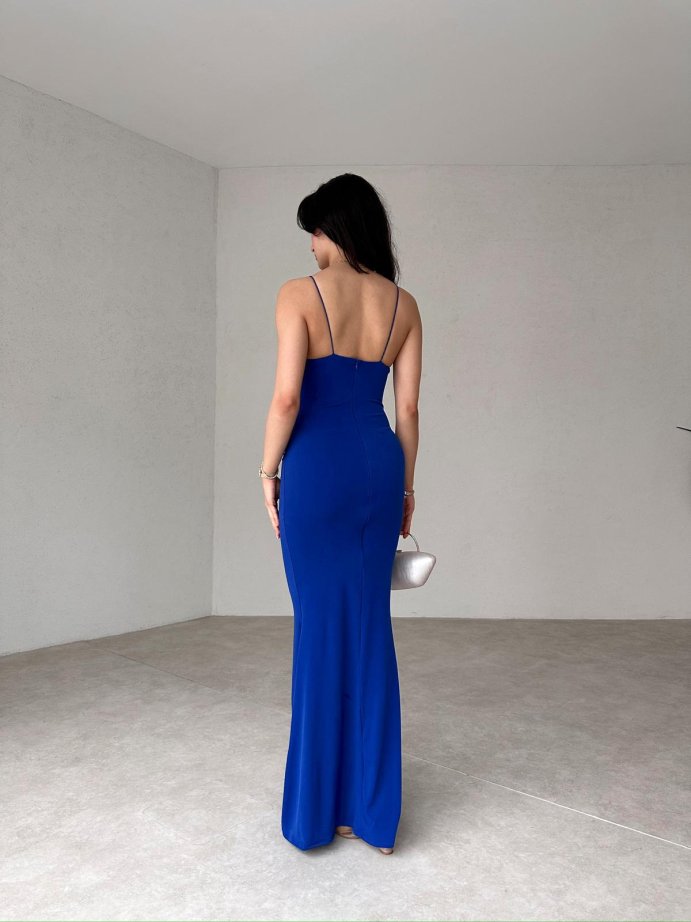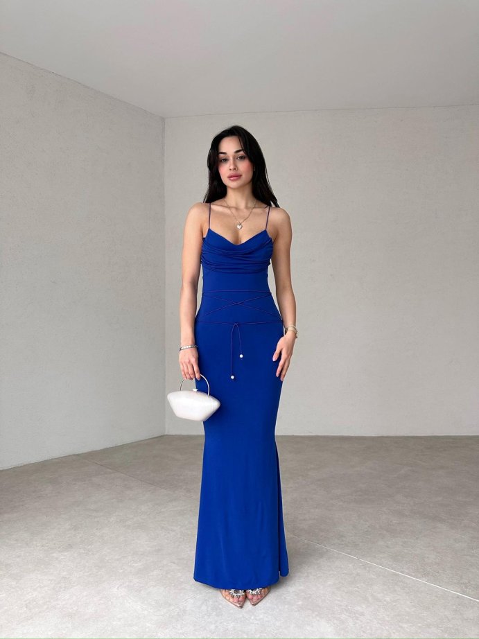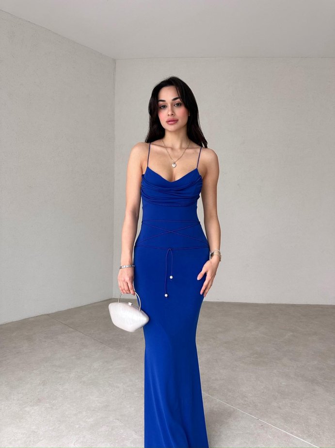 Degaje Detaylı Midi LOWRY Elbise 2069 - Mavi