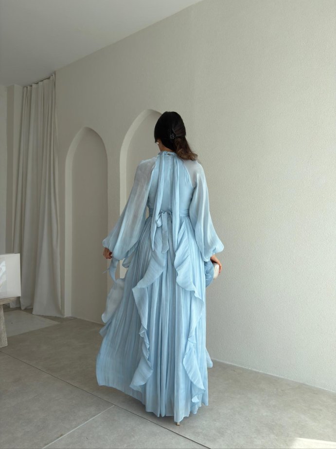 • Elbise kuşaklıdır, fermuarı arkadadır.