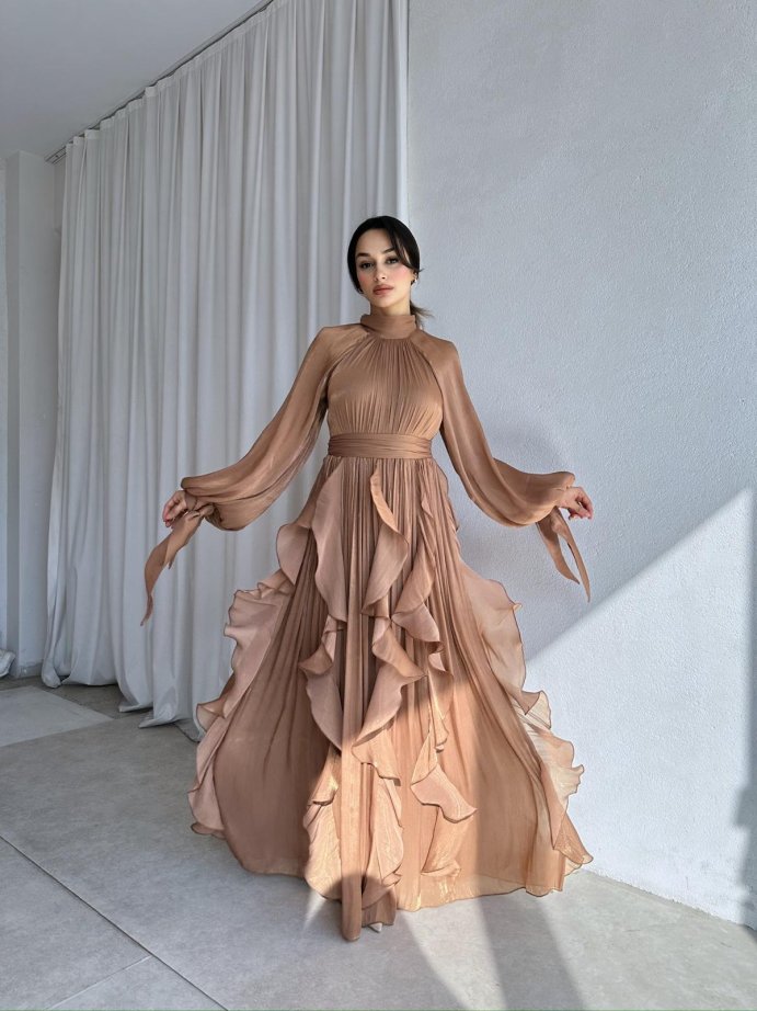 GODWİN Maxi Elbise 6493 - Acı Kahve