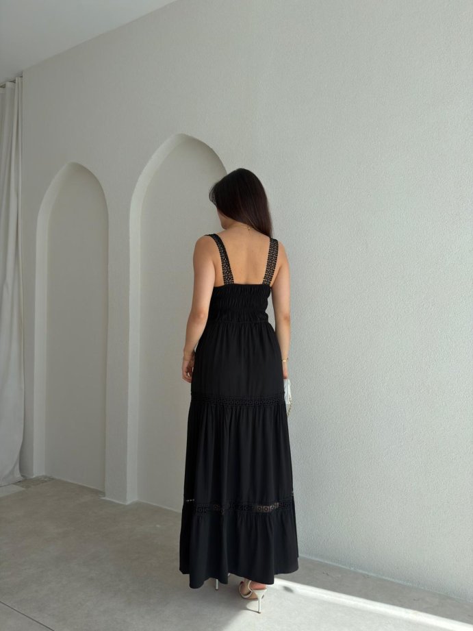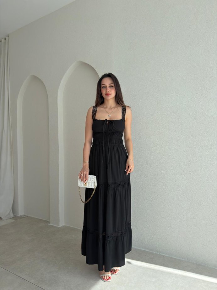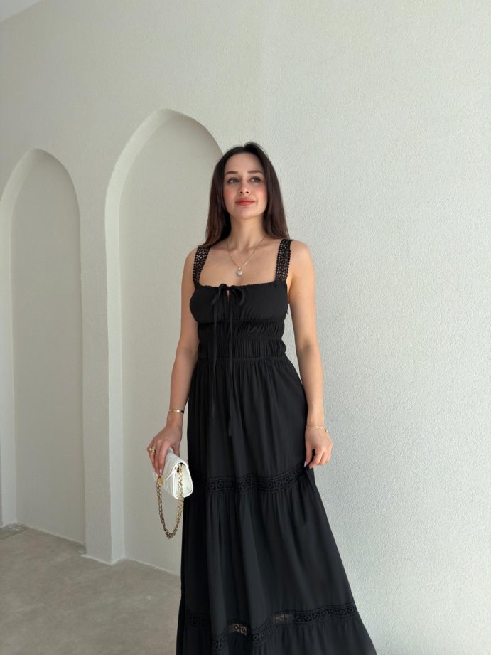 ODELLA Dantelli Maxi Elbise 2024 - Siyah