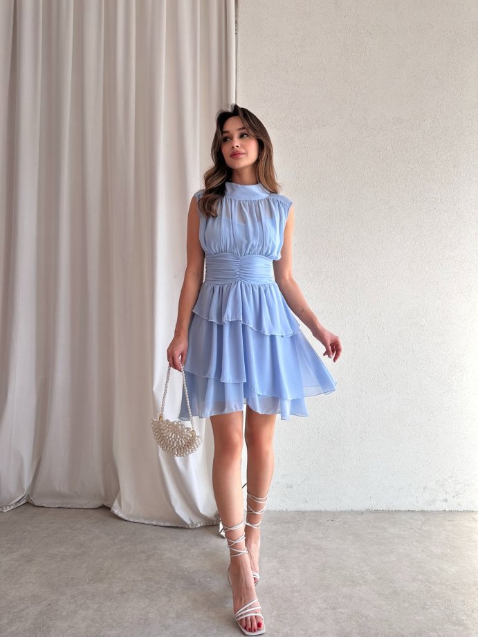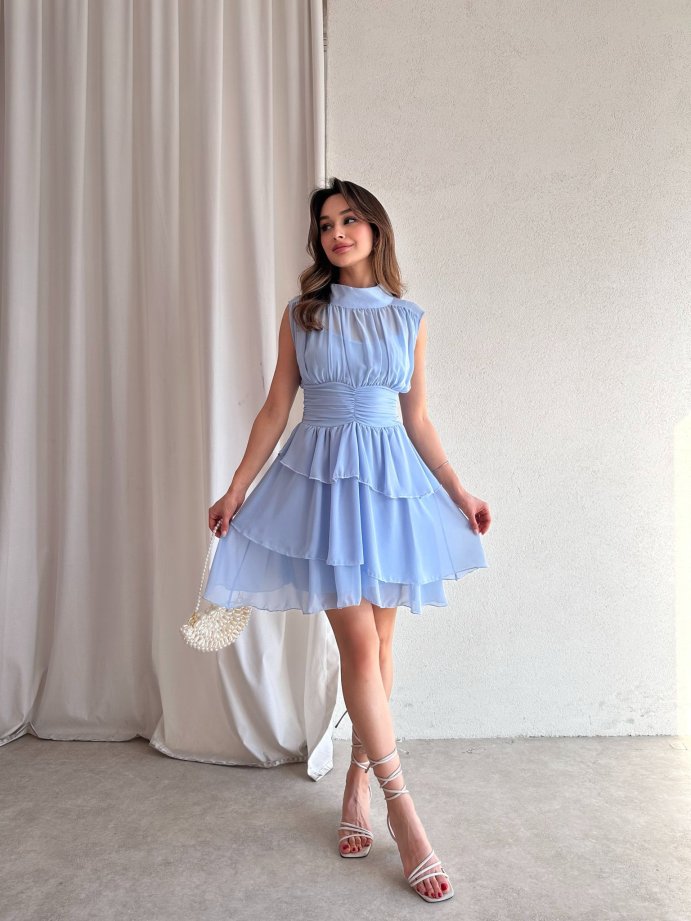 Dik Yaka Sıfır Kol Messina Elbise 2292 - Mavi