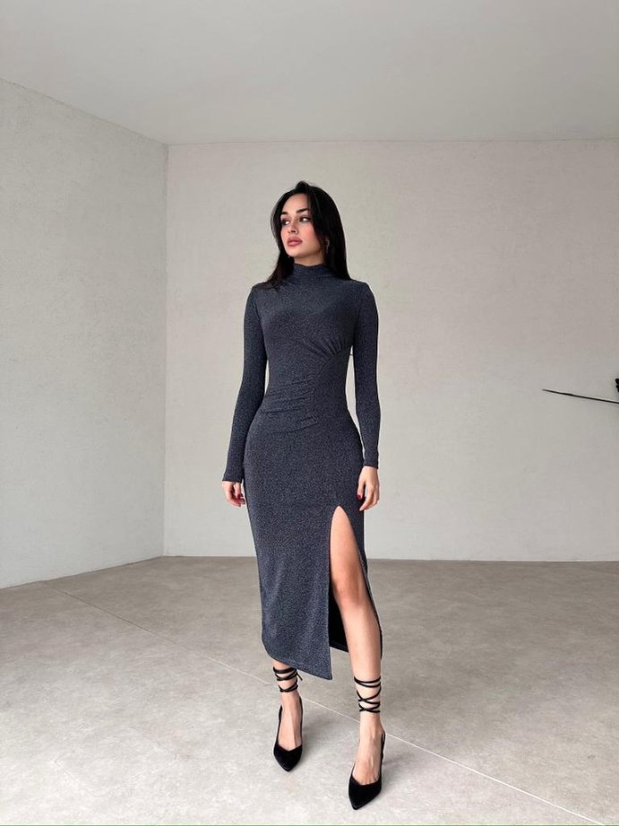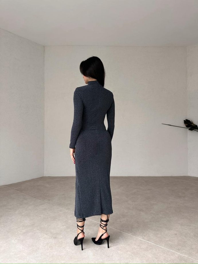 Dik Yakalı Midi DOMENİCO Elbise 3783 - Antrasit