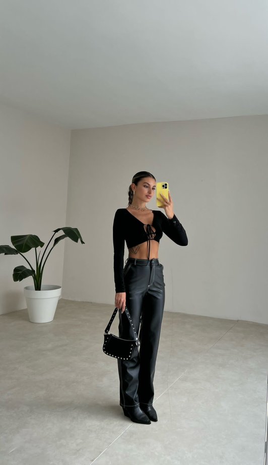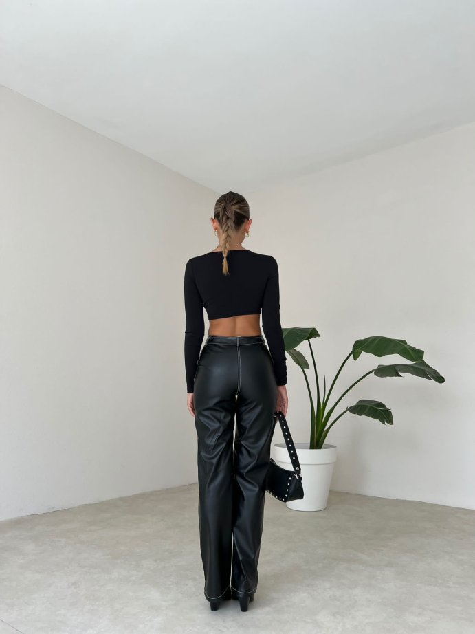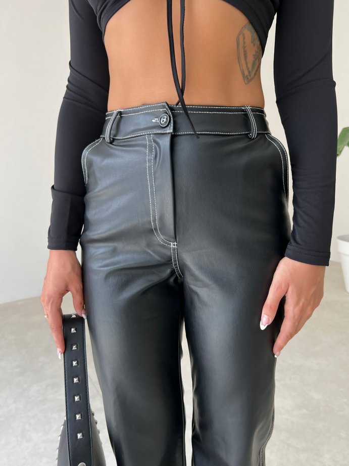 Dikiş Detaylı Deri Russell Pantolon 5780 - Siyah