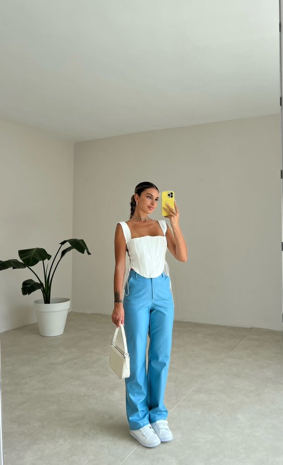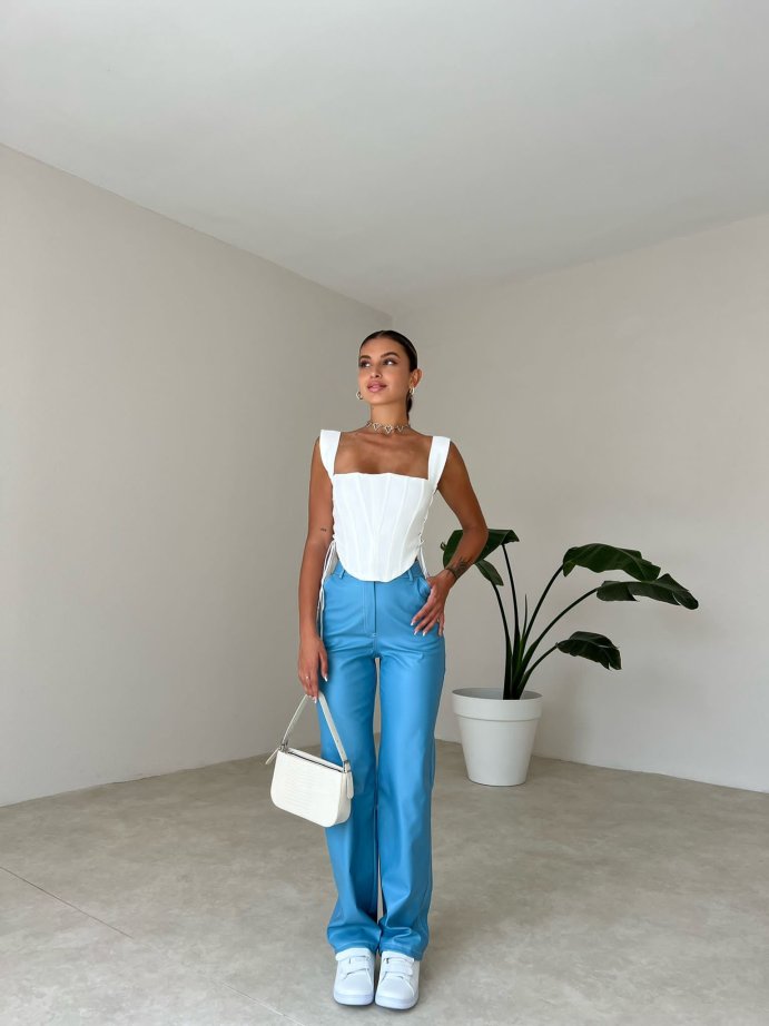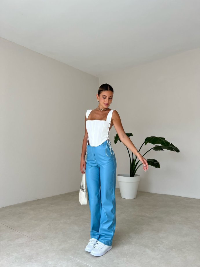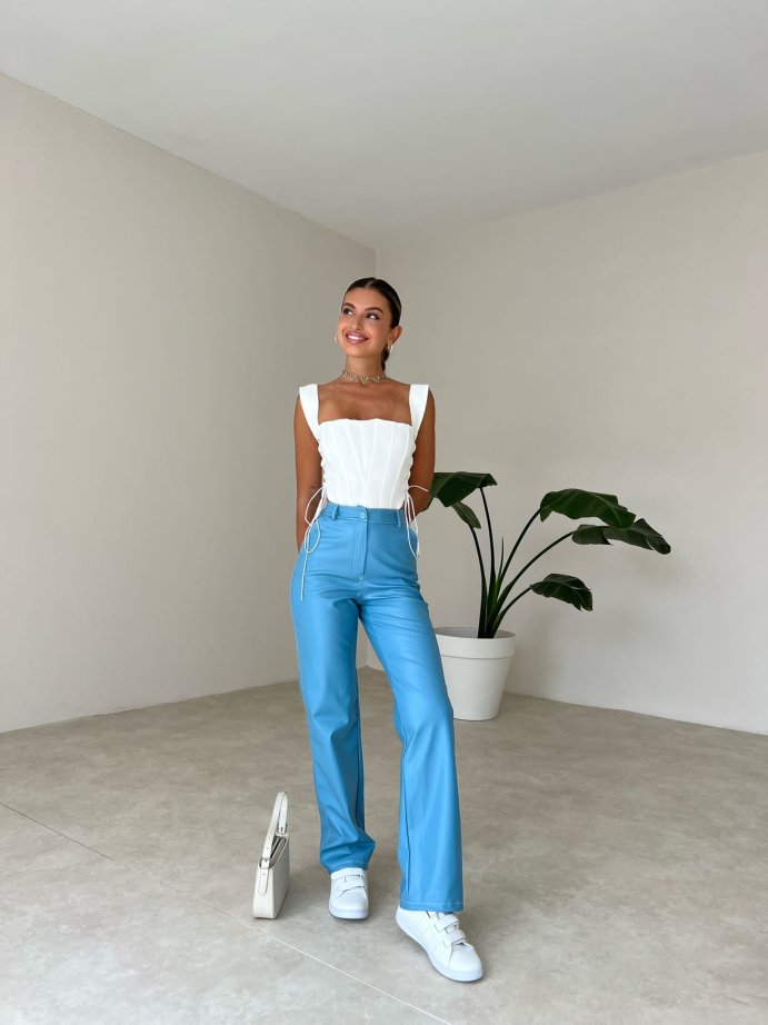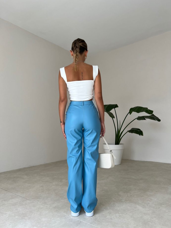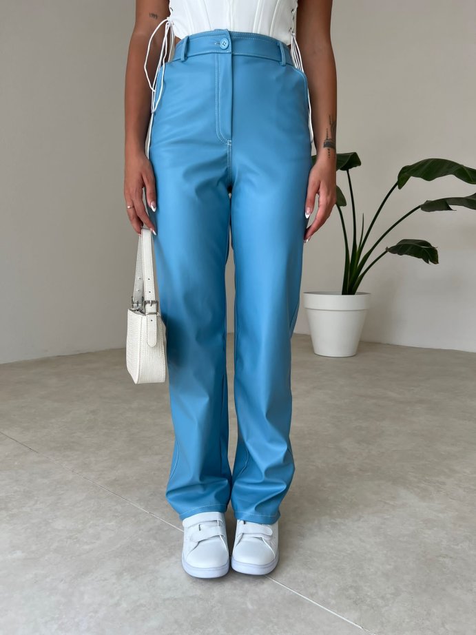 Dikiş Detaylı Deri Russell Pantolon 5780 - Mavi