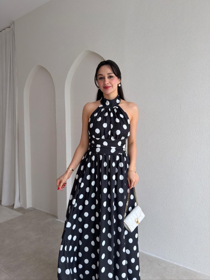 DİSNEY Puantiyeli Maxi Elbise 1569 - Siyah