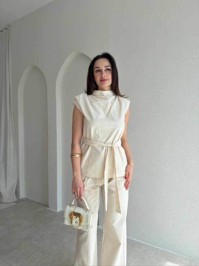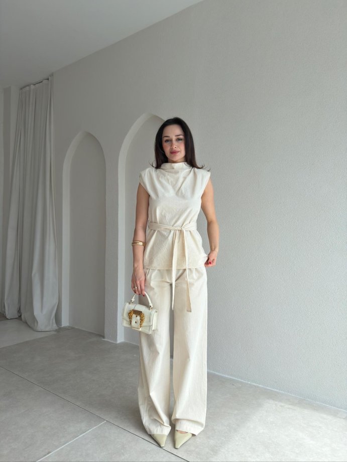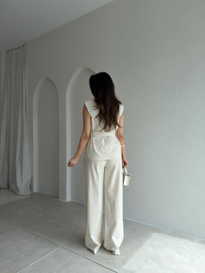 DİVİNE Keten Takım 9037 - Krem Rengi