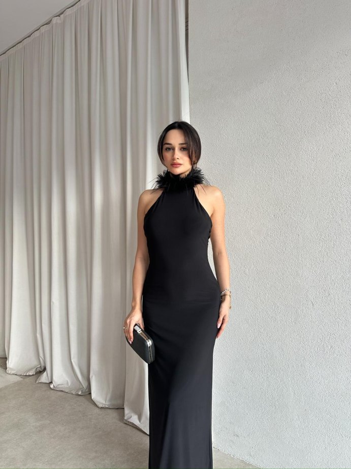 DOJA Otriş Yaka Maxi Elbise 8783 - Siyah