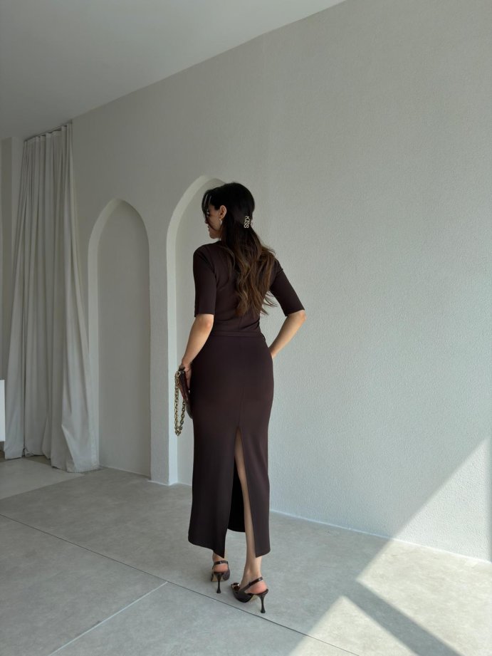 TASSEL Midi Elbise 8938 - Acı Kahve
