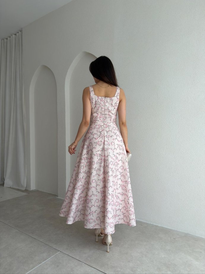 ELOİSE Çiçek Desenli Midi Elbise 8529 - Pudra