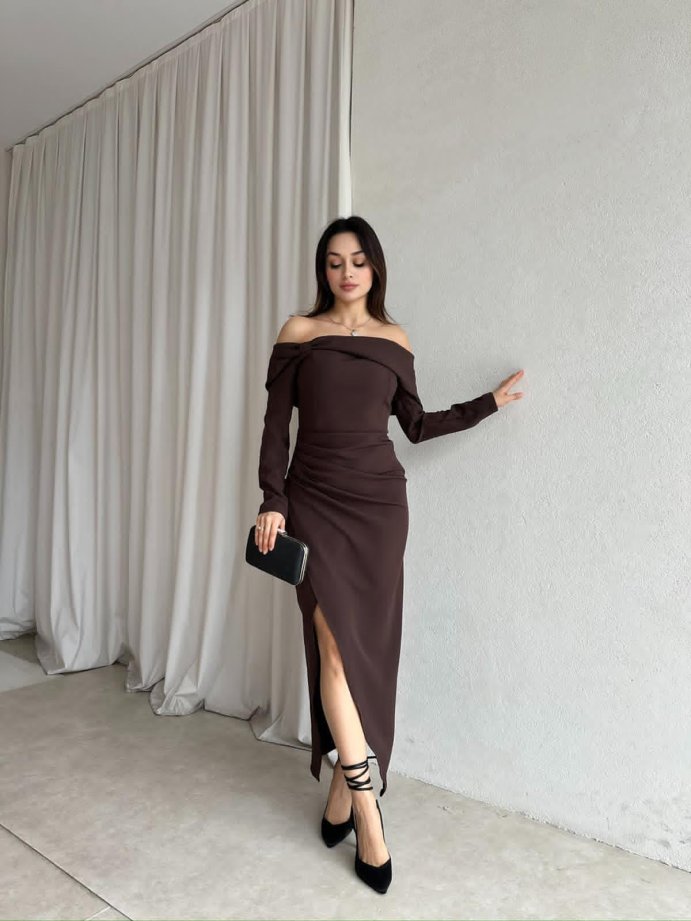 EMİLİA Maxi Elbise 4210 - Acı Kahve