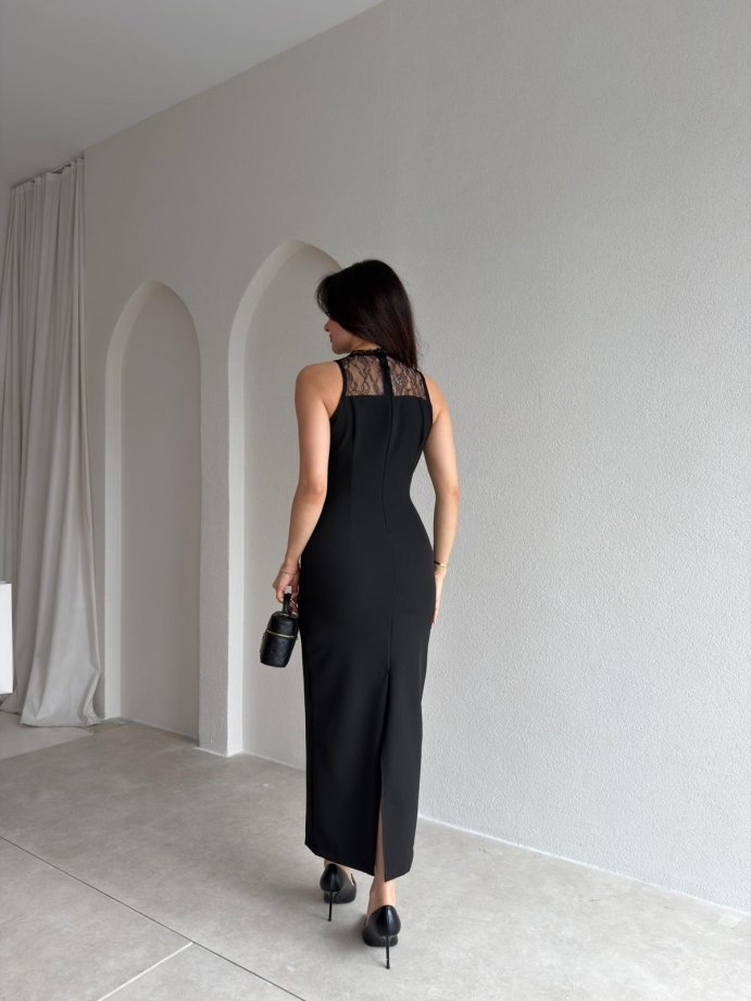 EPHRON Dantel Detaylı Midi Elbise 7483 - Siyah