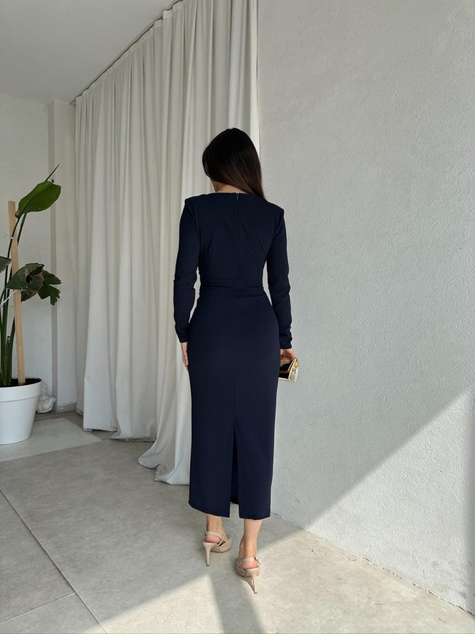 TAYLOR Midi Deri Elbise 8570 - Siyah