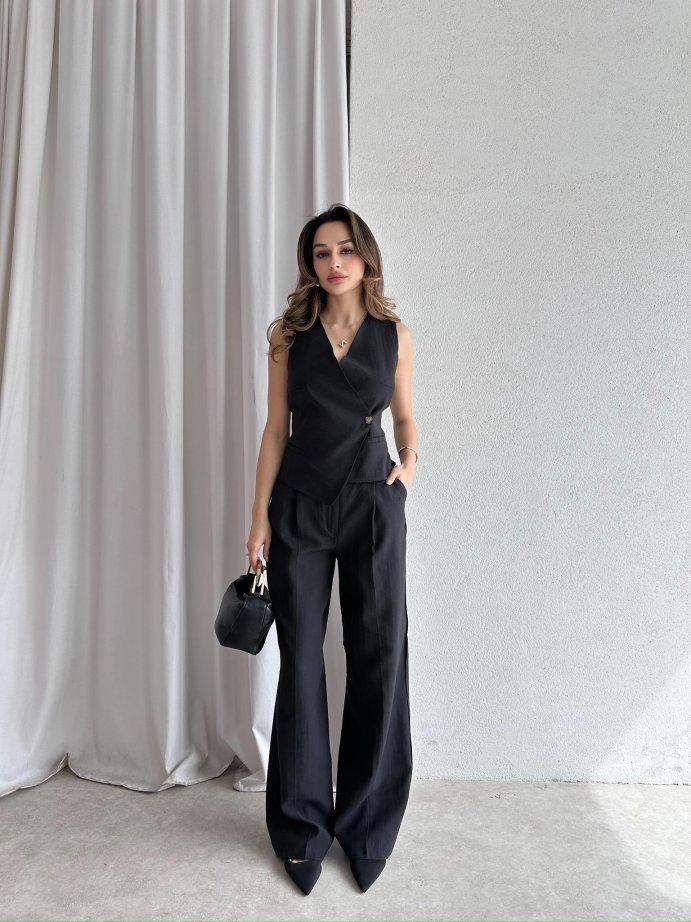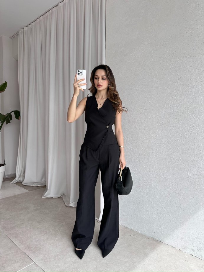 CAROLİNA Deri Yelek 8449 - Siyah
