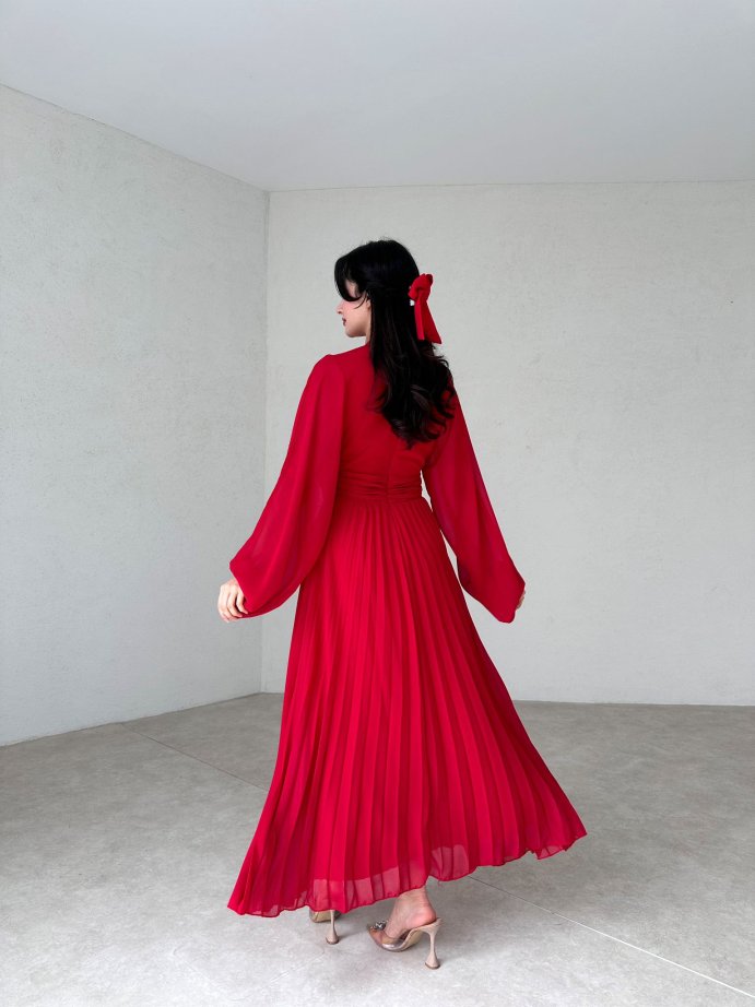 Eteği Piliseli Bogota Elbise 1199 - Kırmızı - 3