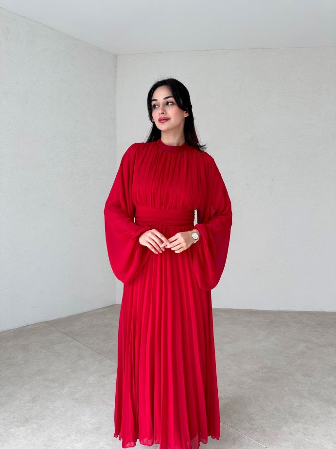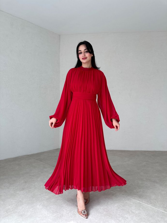 Eteği Piliseli Bogota Elbise 1199 - Kırmızı