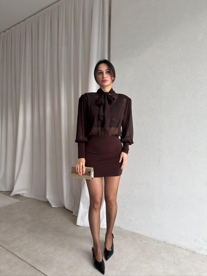 EVİL Mini Şifon Elbise 8854 - Acı Kahve