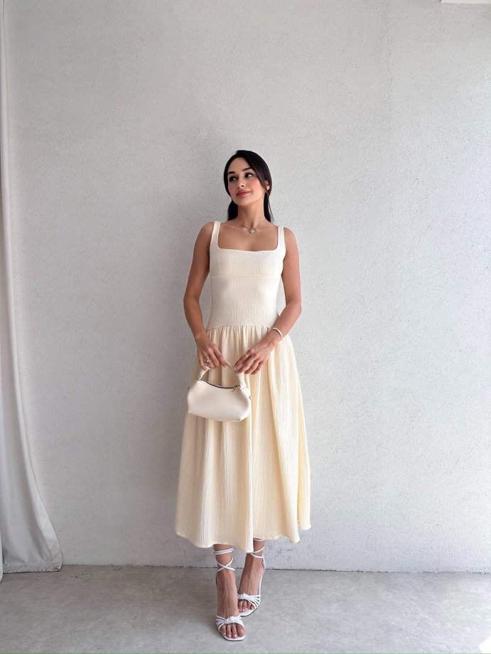 Dekolte Detaylı Midi THALES Elbise 5500 - Taş