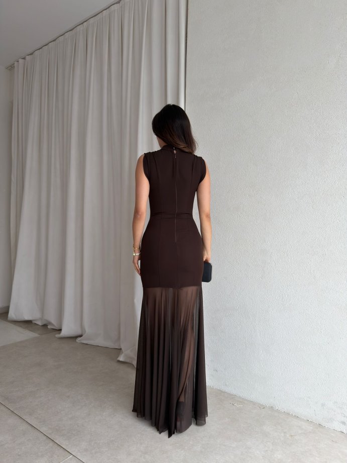FAİR Maxi Elbise 4444 - Acı Kahve