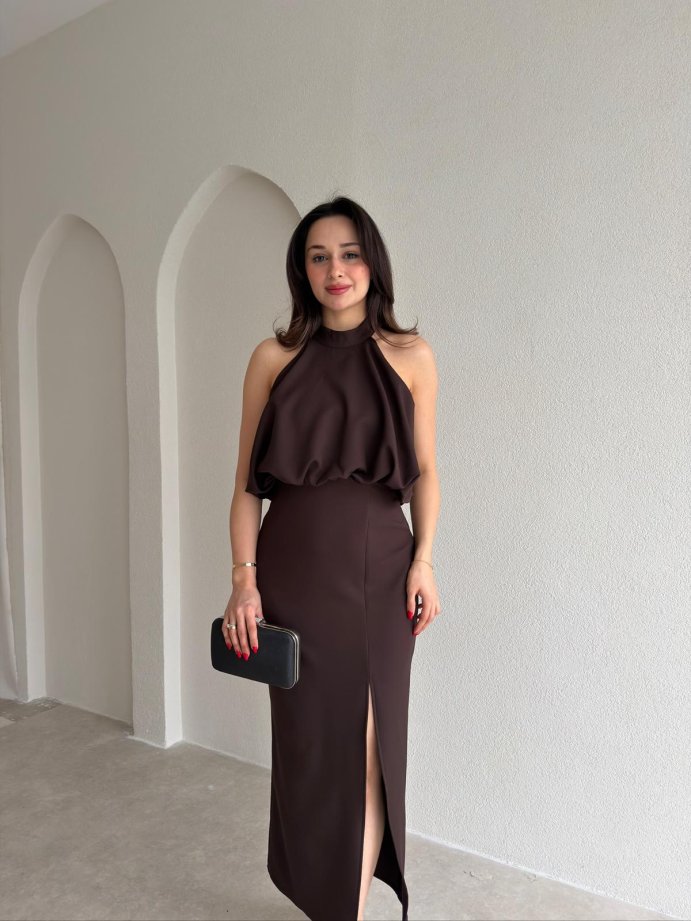 FAYOL Midi Elbise 7899 - Acı Kahve