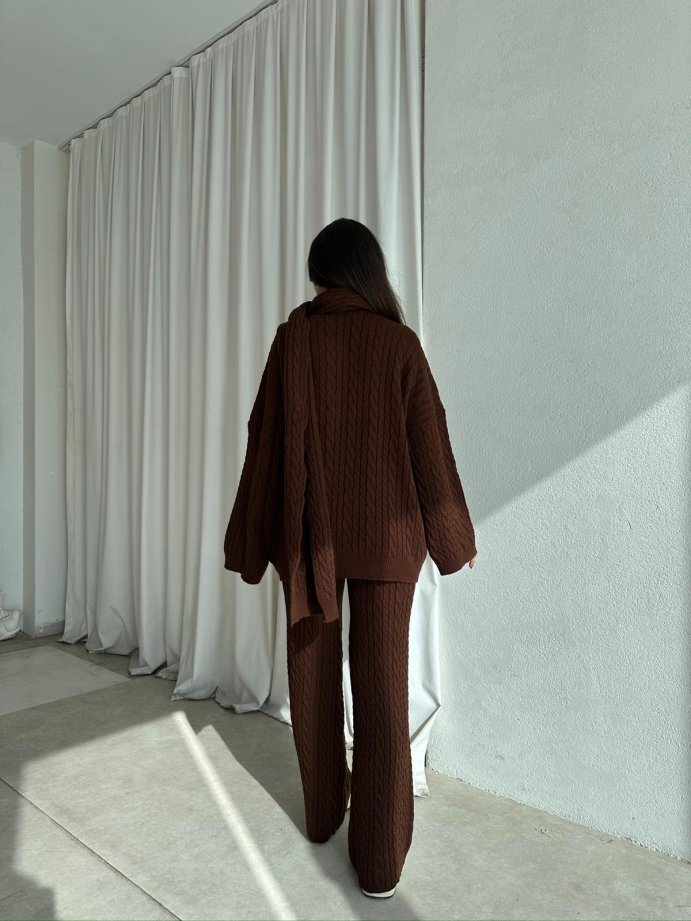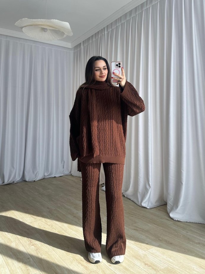 CANDİS Triko Fularlı Takım 8512 - Kahverengi