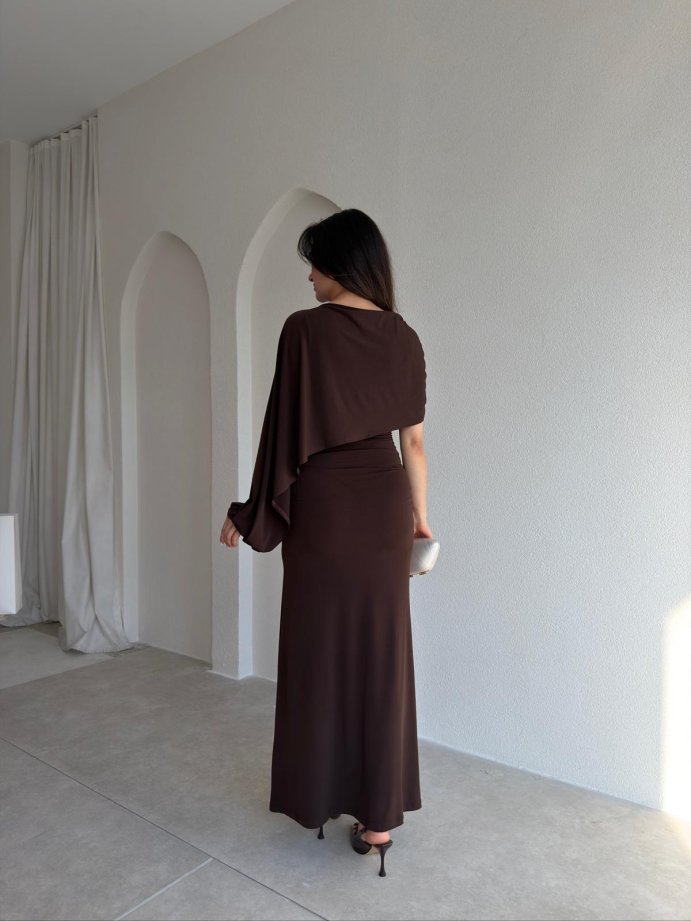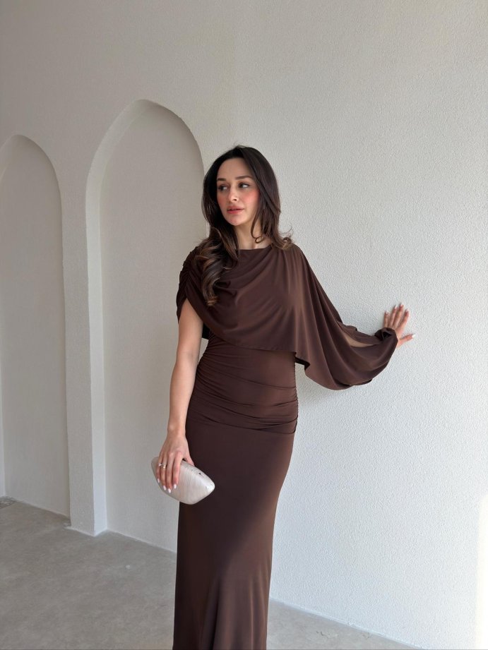 FENGEL Midi Elbise 2889 - Acı Kahve
