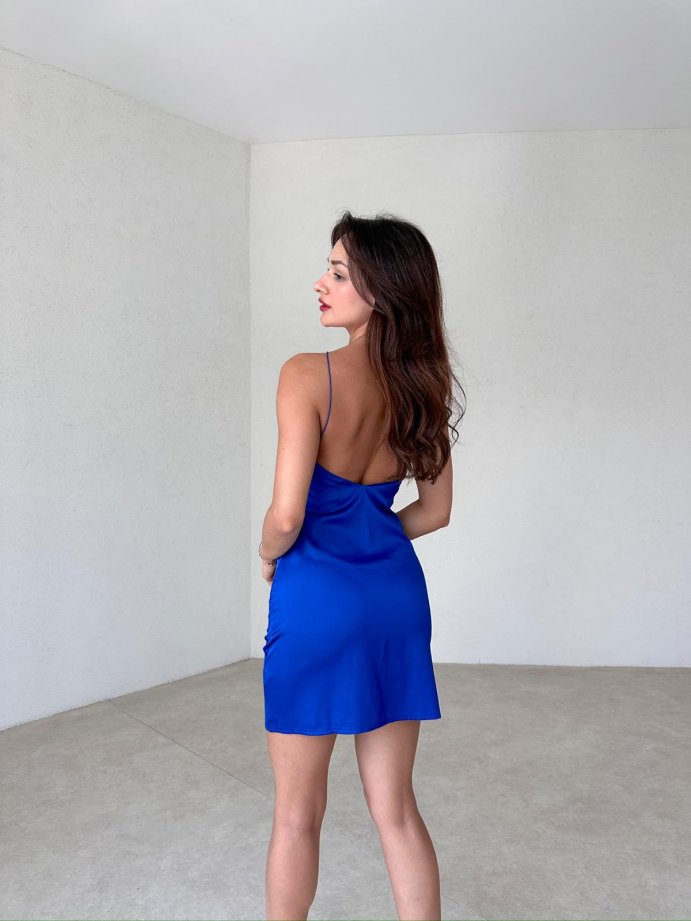 FERLİNDA Mini Elbise 3748 - Saks Mavisi