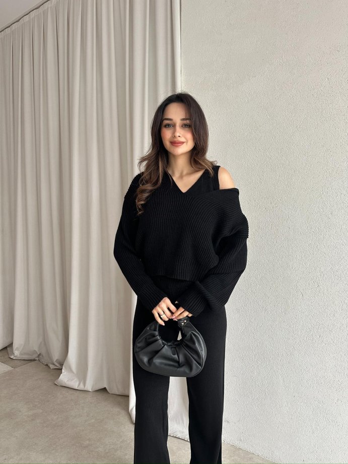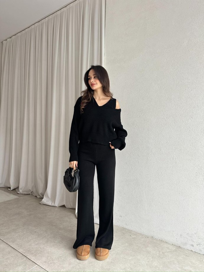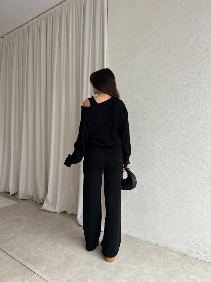 CANDİS Triko Fularlı Takım 8512 - Siyah
