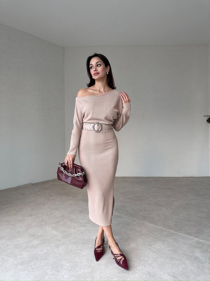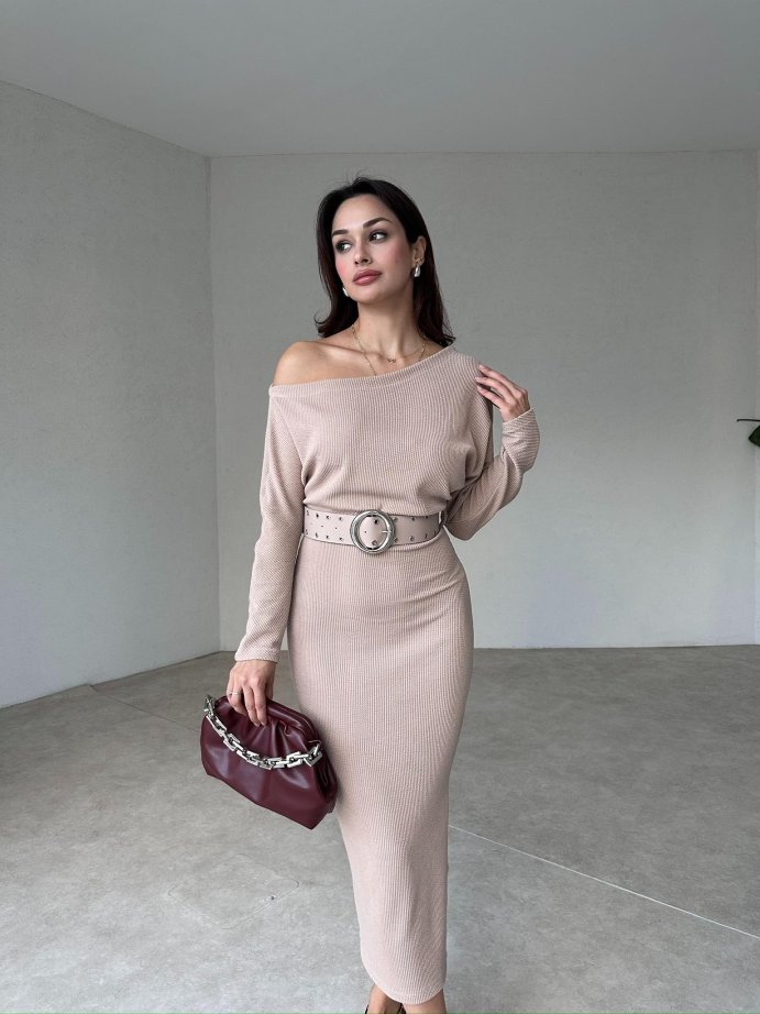 Dekolte Detaylı Midi THALES Elbise 5500 - Taş