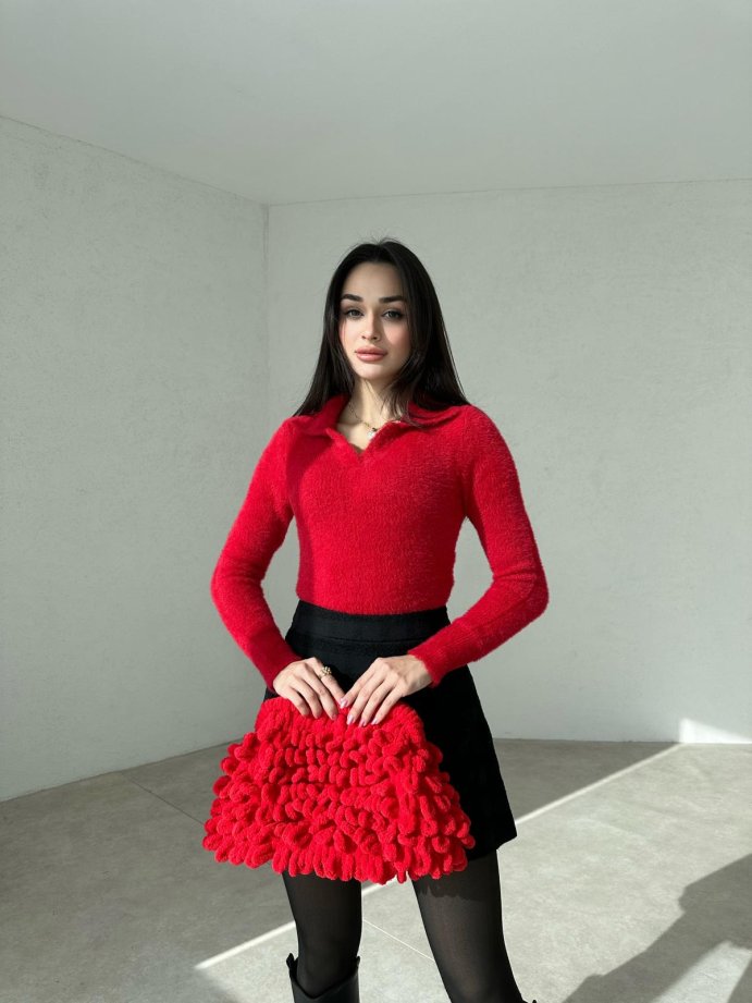 Peluş Dokulu OLGA Çanta 3453 - Kırmızı