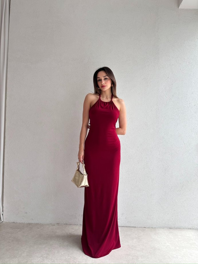 Pullu Mini KENDRİCK Elbise 2849 - Bordo