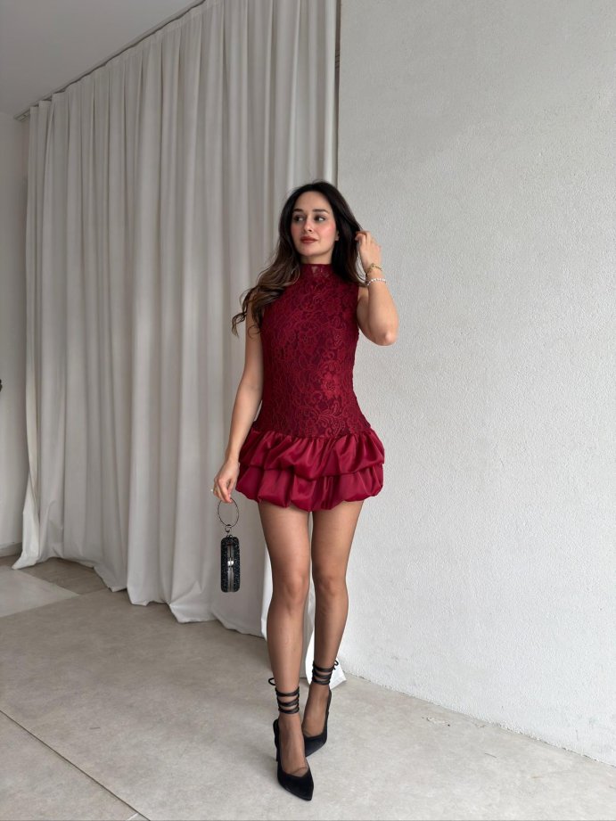 FRED Mini Elbise 8880 - Bordo