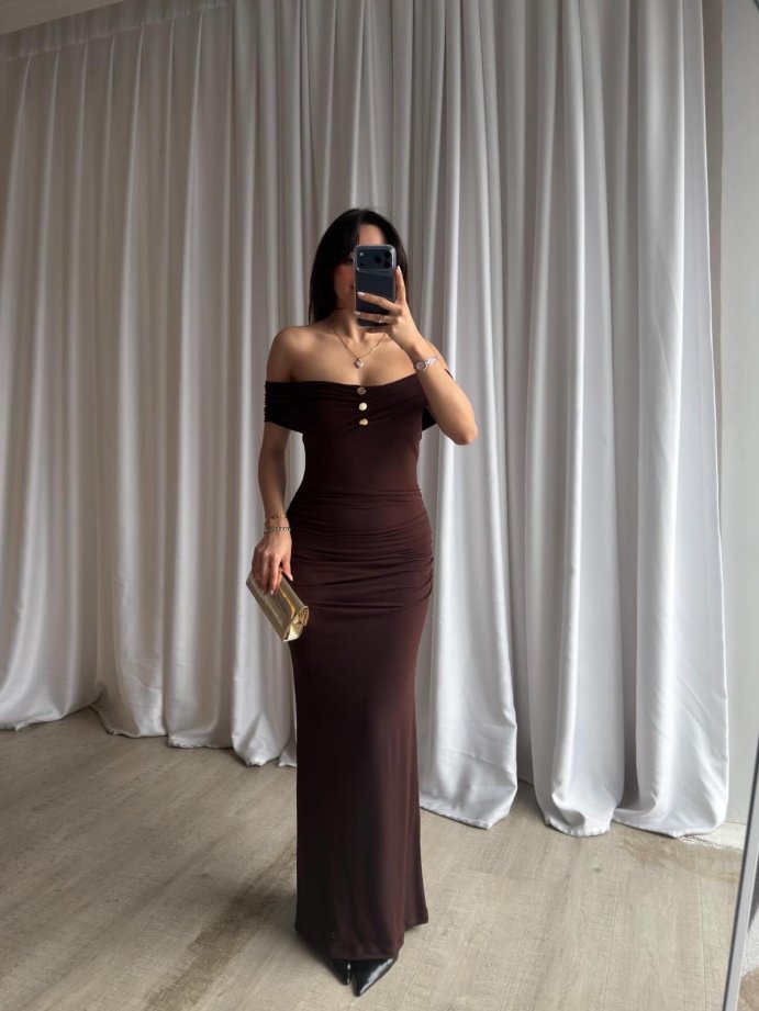 FREZYA Maxi Elbise 8902 - Acı Kahve