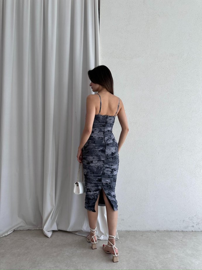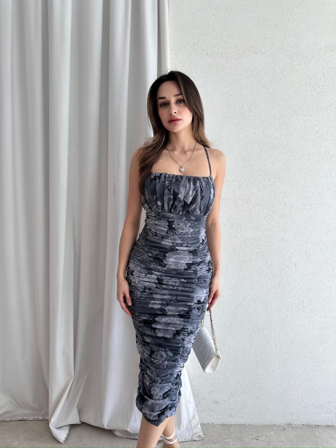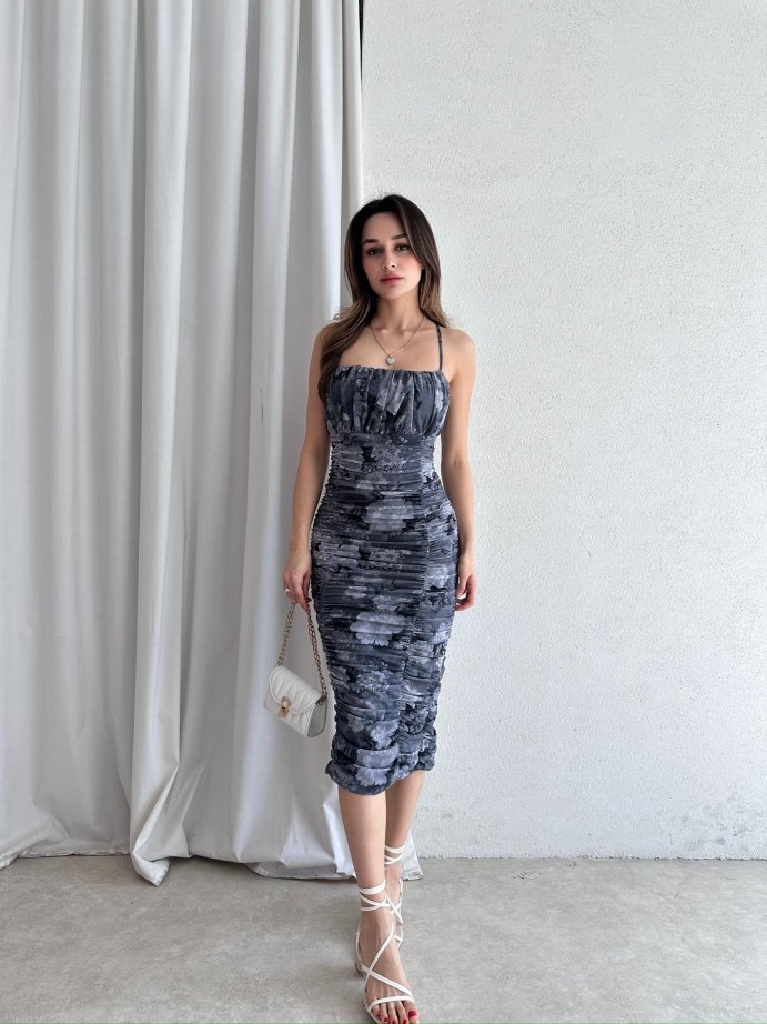 Dekolte Detaylı Midi THALES Elbise 5500 - Taş