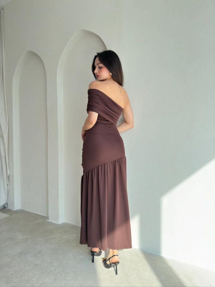 LİVA Puantiyeli Midi Elbise 8980 - Acı Kahve
