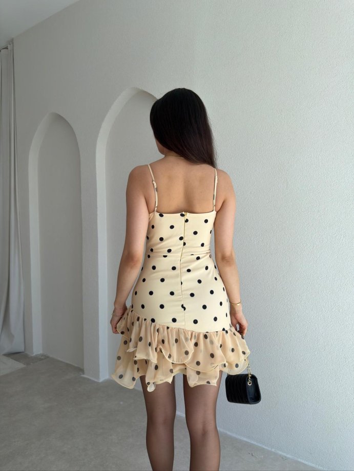 GARCİA Puantiyeli Mini Elbise 9835 - Krem Rengi