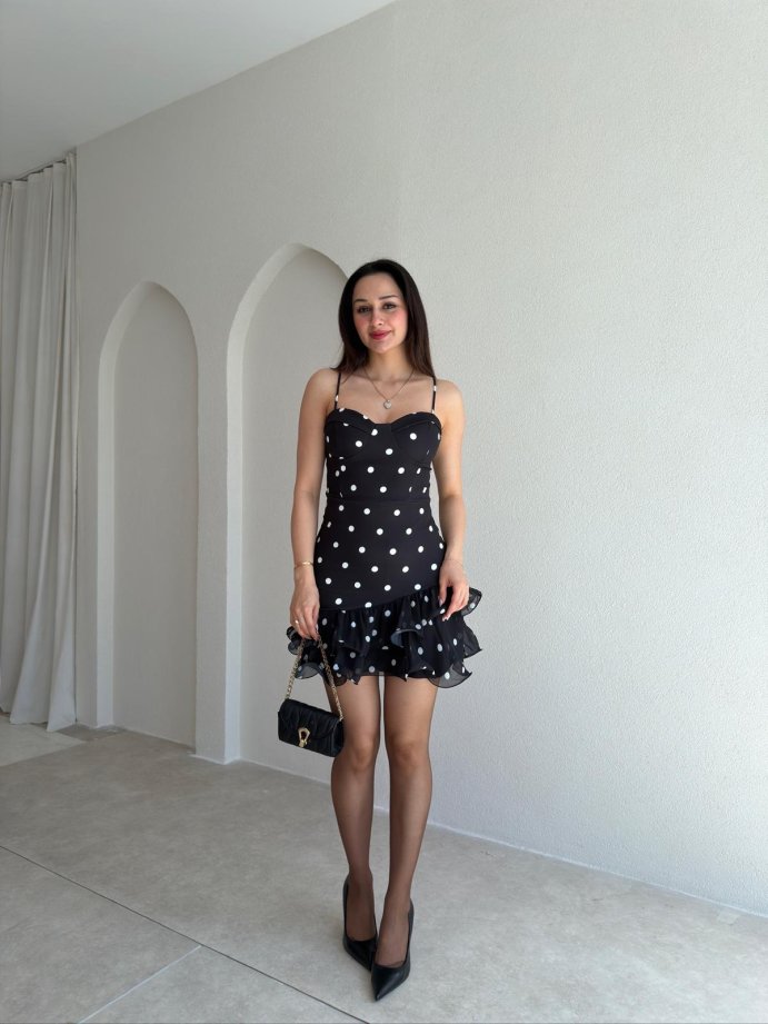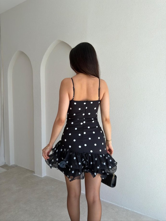 GARCİA Puantiyeli Mini Elbise 9835 - Siyah