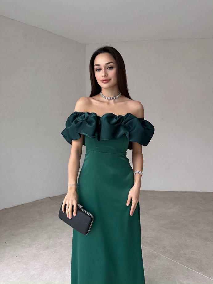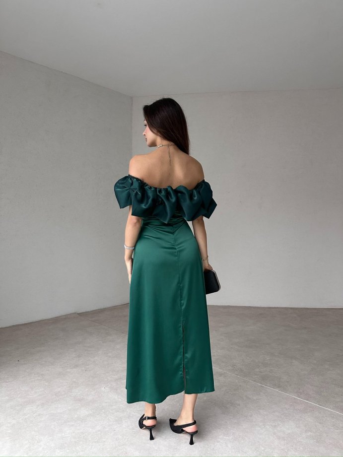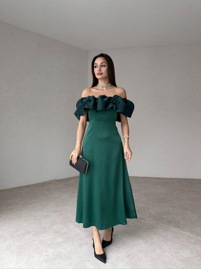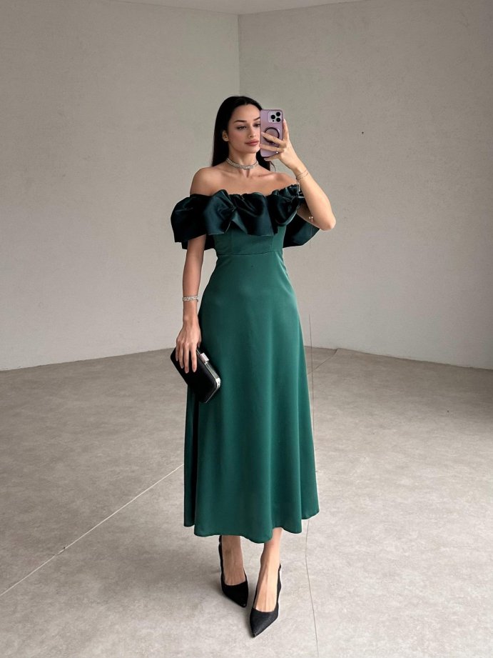 HUXLEY Simli Midi Elbise 5933 - Zümrüt Yeşili