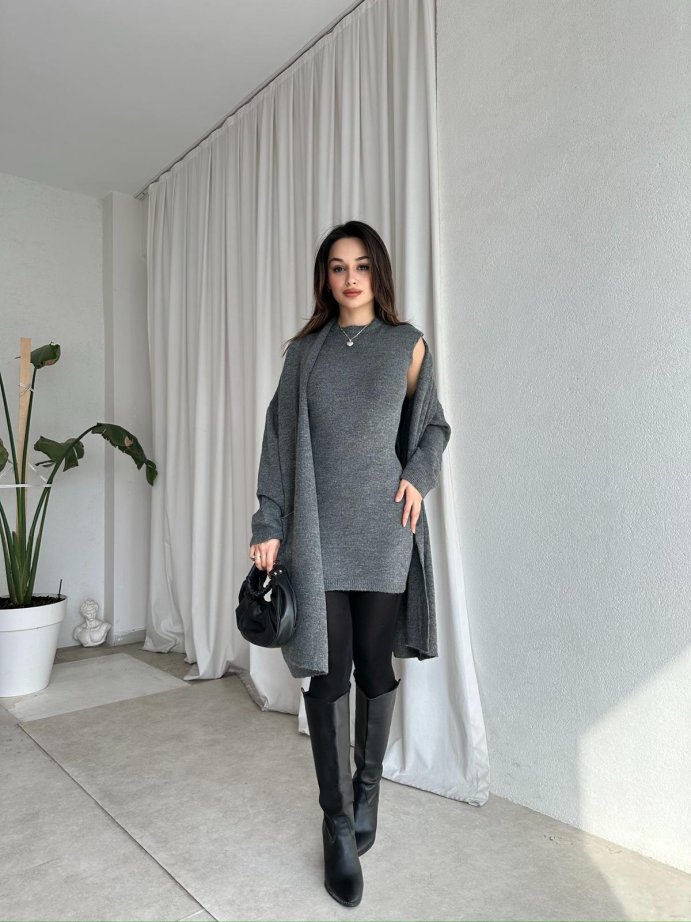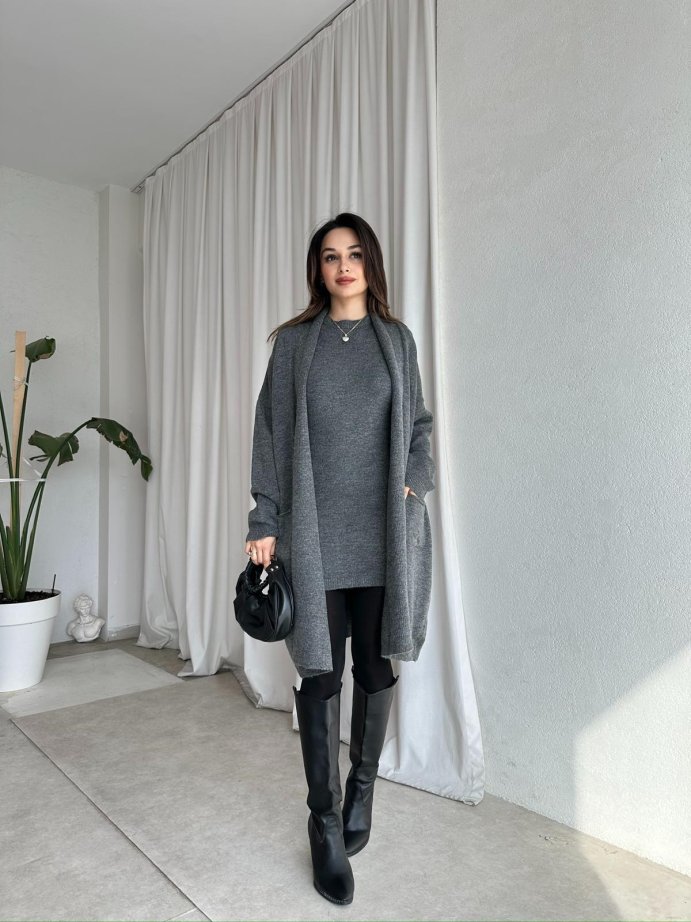 - Takım hırkası omuzdan aşağı 94 cm uzunluğundadır.