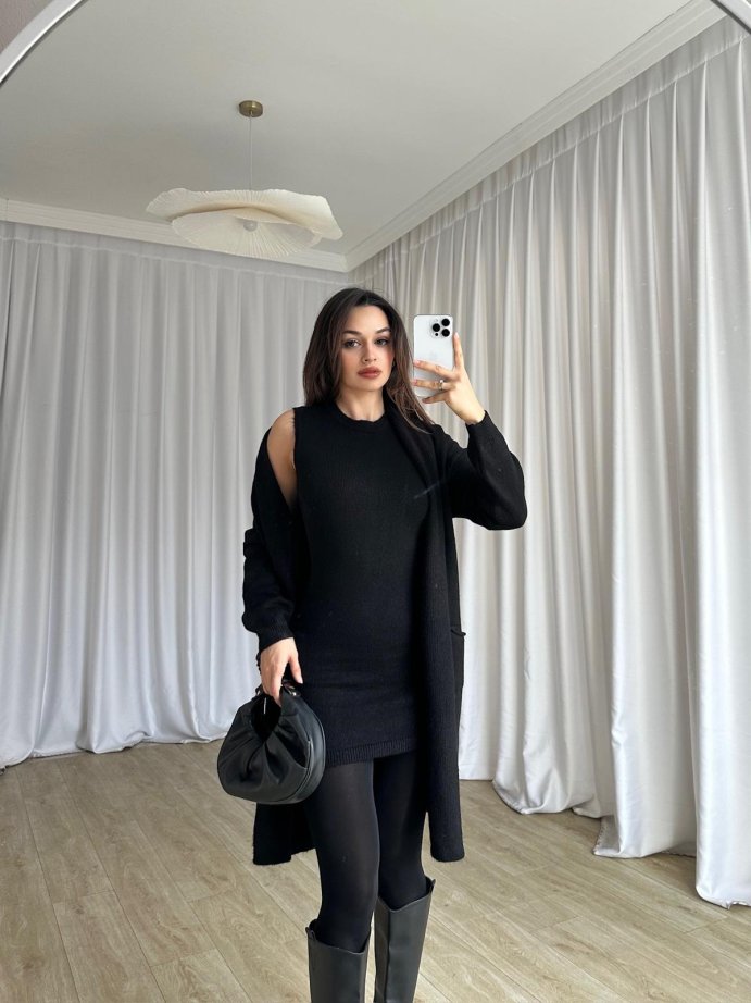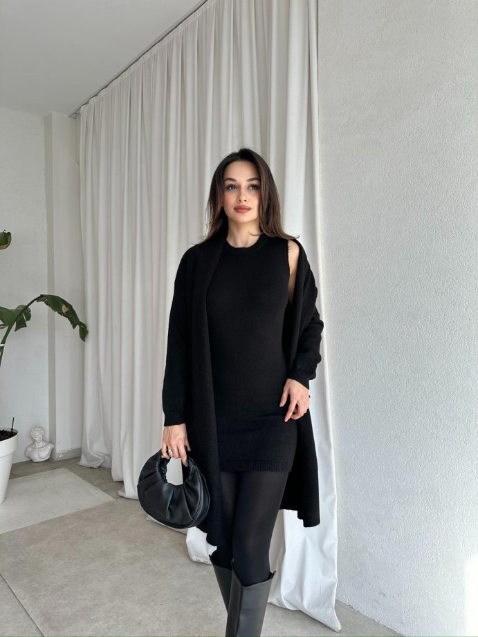 Takım hırkası omuzdan aşağı 94 cm uzunluğundadır.