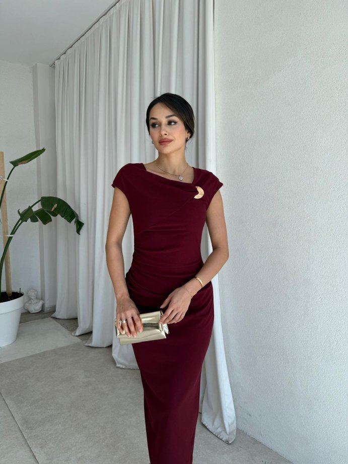 WALERY Omuz Tokalı Midi Elbise 9052 - Acı Kahve