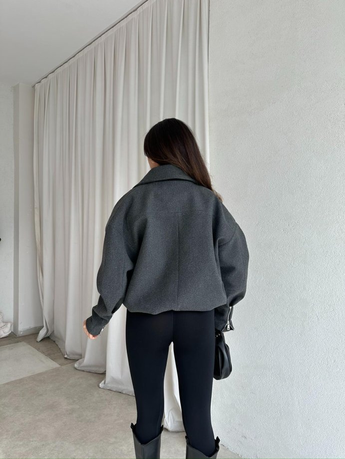 GİGİS Kaşe Crop Ceket 8698 - Füme