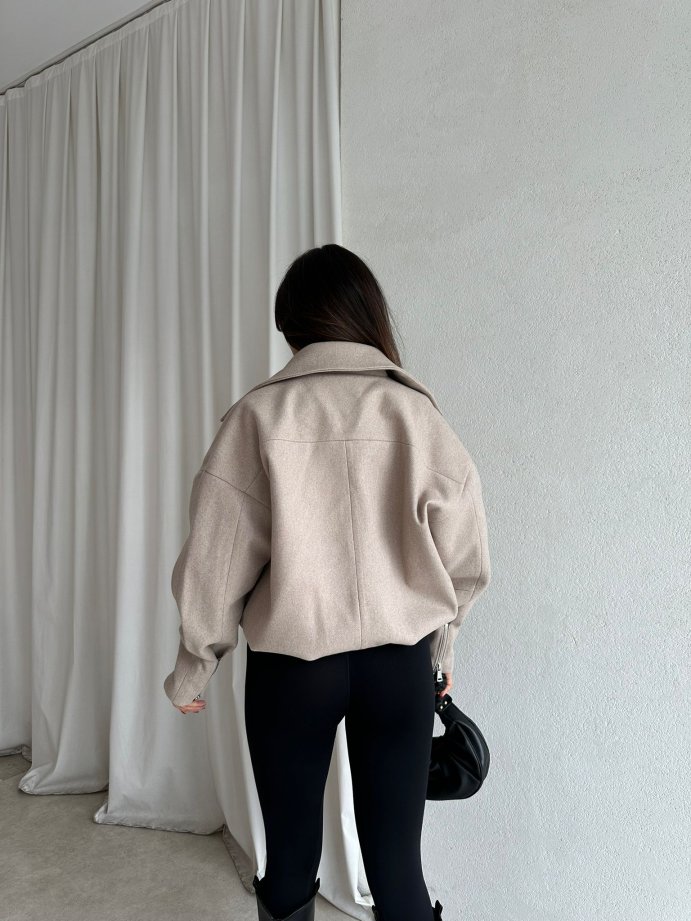 GİGİS Kaşe Crop Ceket 8698 - Krem