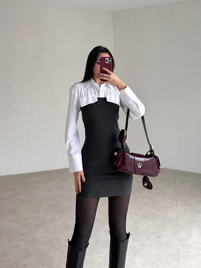 Gömlek Detaylı Mini SİMON Elbise 2010
