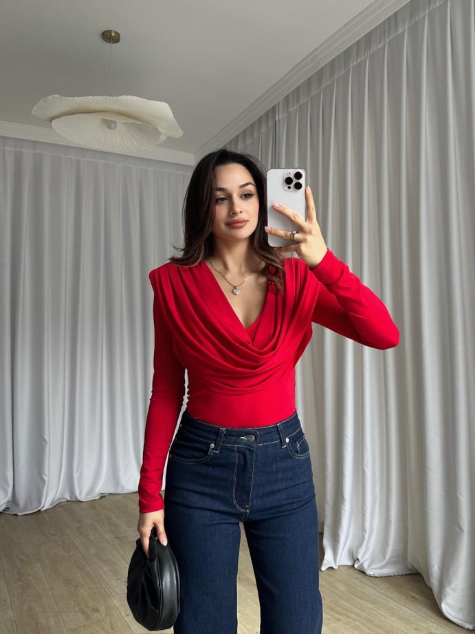 GOSSİP Dökümlü Bluz 8326 - Kırmızı