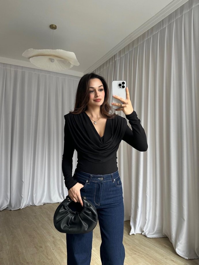 GOSSİP Dökümlü Bluz 8326 - Siyah