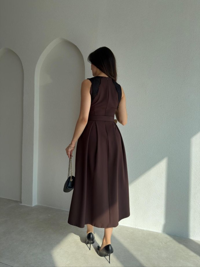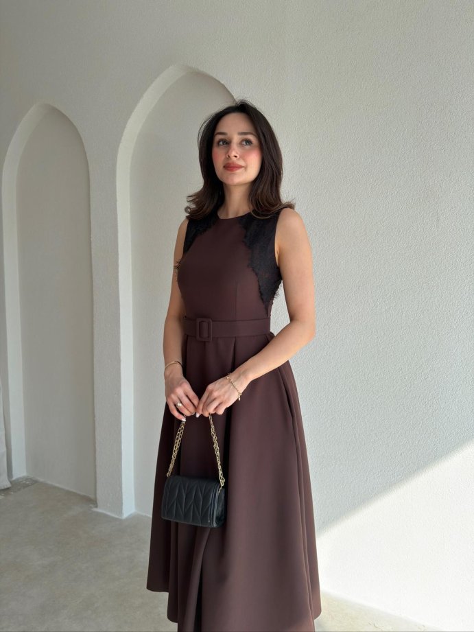 GROZA Dantel Detaylı Midi Elbise 9042 - Acı Kahve